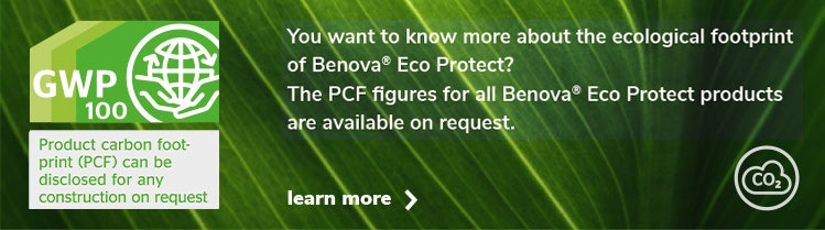 Benova Protect can be manufactured in a variety of customized solutions. Based on the respective design, different PCF values (PCF = product carbon footprint) result, which provide information on how climate-friendly a product is.