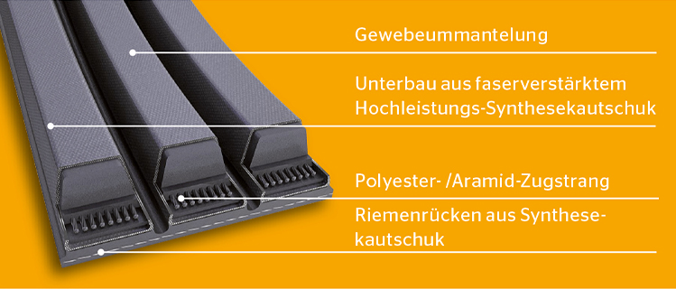 • Bieten besonders ausgeprägte Laufruhe und verhindern das Umschlagen des Riemens in den Riemenscheiben