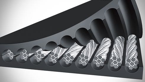 The Continental steelcord belt families Phoenix Phoenocord and Flexsteel provide superior impact resistance, with the number and size being selected to meet the desired operating tension and application needs. The insulation gum is specifically designed to encapsulate each steel cord filament to reduce internal friction while providing enhanced adhesion to the cover rubbers. Top and bottom covers provide maximum protection to the steel cord. The cover compounds are specifically designed to meet the demands of the application and are available in a wide variety of rubber types and gauges.