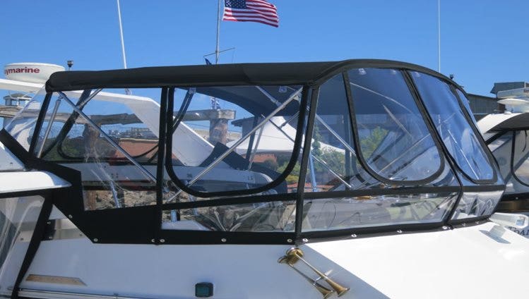 Keep that clear vinyl clear!  Specially formulated cleaning products that can be used safely on our clear vinyl are now available through select distributors.  We’ve come up with the best cleaning solution to keep scratches, clouding and chemical damage from occurring.  Suntan lotions, fuel vapors, dirt and even rain can make your view distorted. Protect your clear vinyl today using the easy 1, 2, 3 steps.