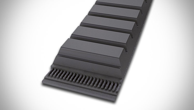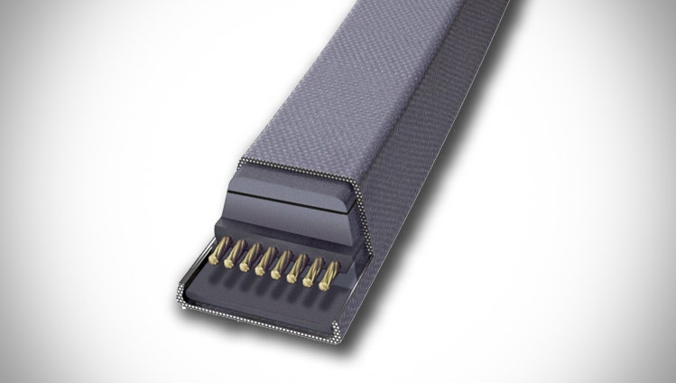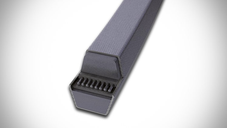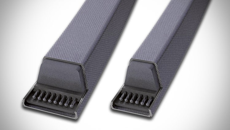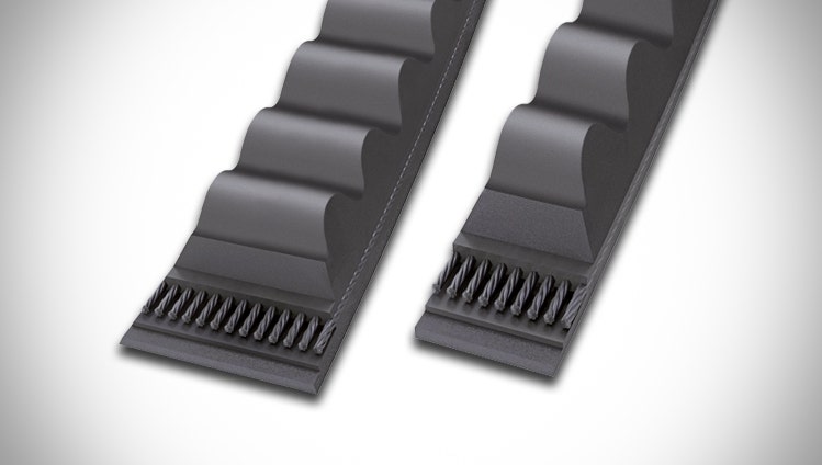 Transversely stiff raw-edge EPDM heavy-duty banded V-belts for powerful, sustained power transmission with enhanced running smoothness.