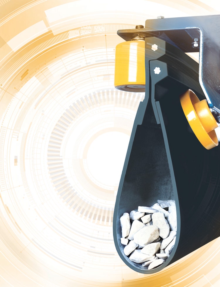 The Sicon system’s conveyor belt consists of two fabric-reinforced profiles with a steel cord as tensile member. The profiles run over the roller sets and carry the conveyor belt. This creates a tear-drop-shaped pouch made of highly flexible rubber that is bound to the profiles through hot vulcanization. With the vertical arrangement of the roller sets, the profiles lie on top of each other during transport, so that the belt is enclosed dust-tight. Sicon opens only at the intake and discharge stations in which the roller sets are arranged next to each other.