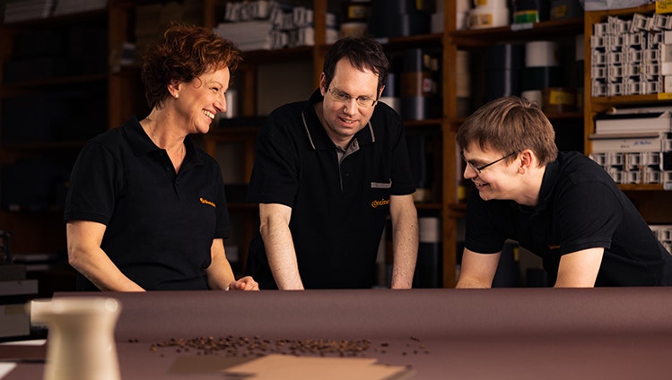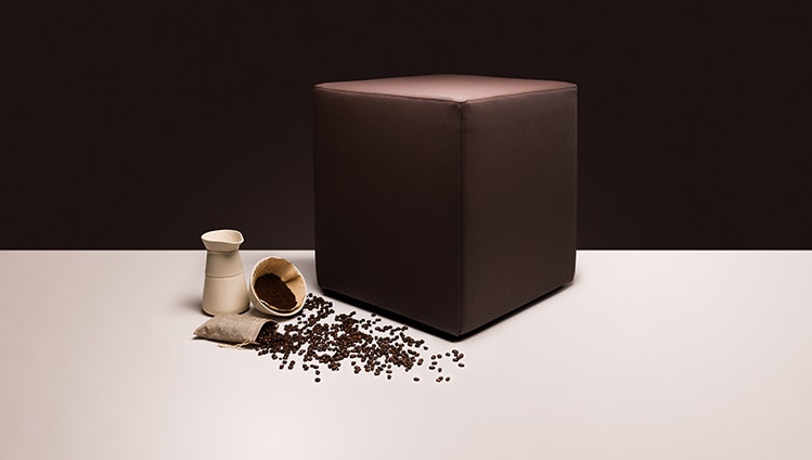 “The idea of using coffee grounds as a raw material fascinated me immediately,” says Heckel enthusiastically. “It is of natural origin, binds methane and carbon dioxide, and is mass produced in households and offices in this country.” In fact, every German drinks an average of 170 liters of coffee per year. This produces around 1 million tons of coffee grounds annually. Some of this is now replacing chemically produced raw materials in the skai VyP Coffee upholstery fabric. For this purpose, the coffee grounds are first dried and ground very finely. The result is a paste that is enriched with various other raw materials. “To summarize, it sounds simple, but there were a lot of factors that we had to investigate and adjust in order to achieve such a successful material: the drying must be just right, the grinding grade must not be too fine or too coarse, and in the end, of course, it all comes down to the right blend,” explains Neumann. “Working in the lab we were always aware of a mild coffee smell.”