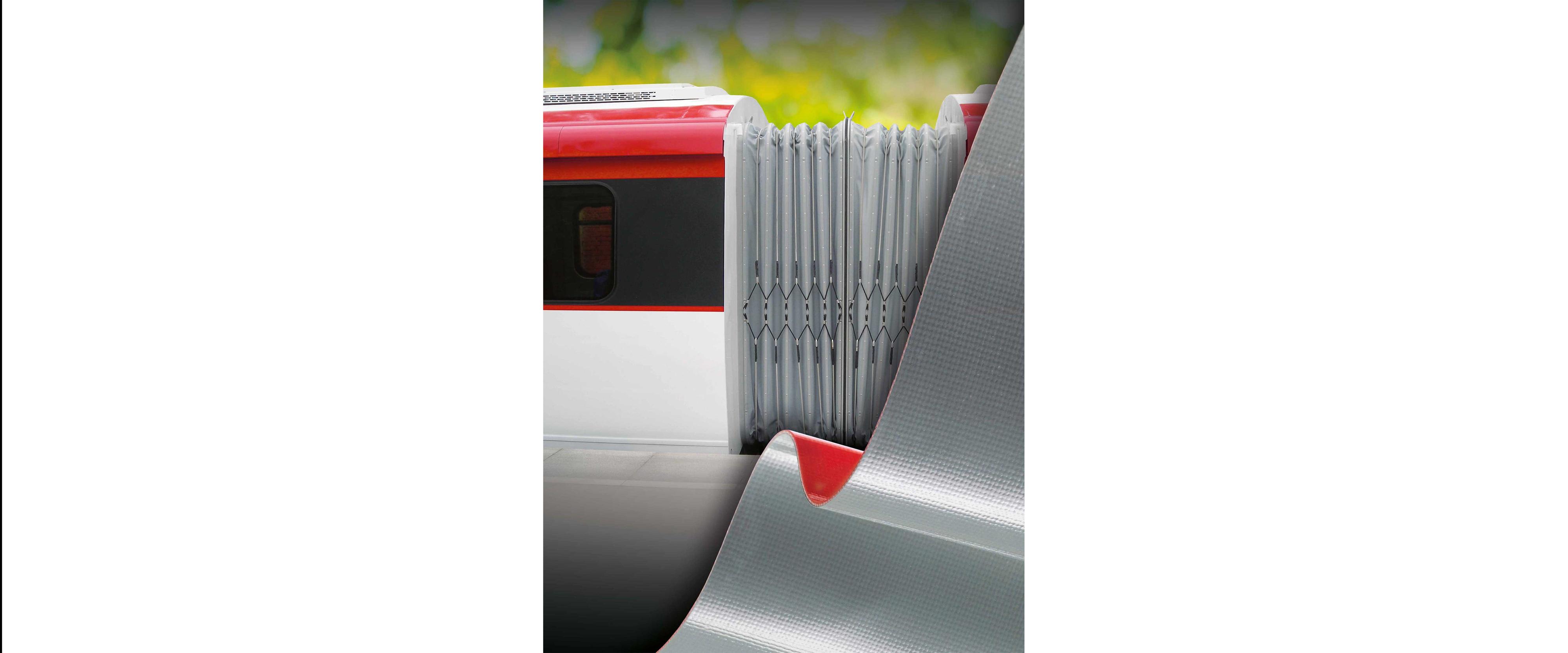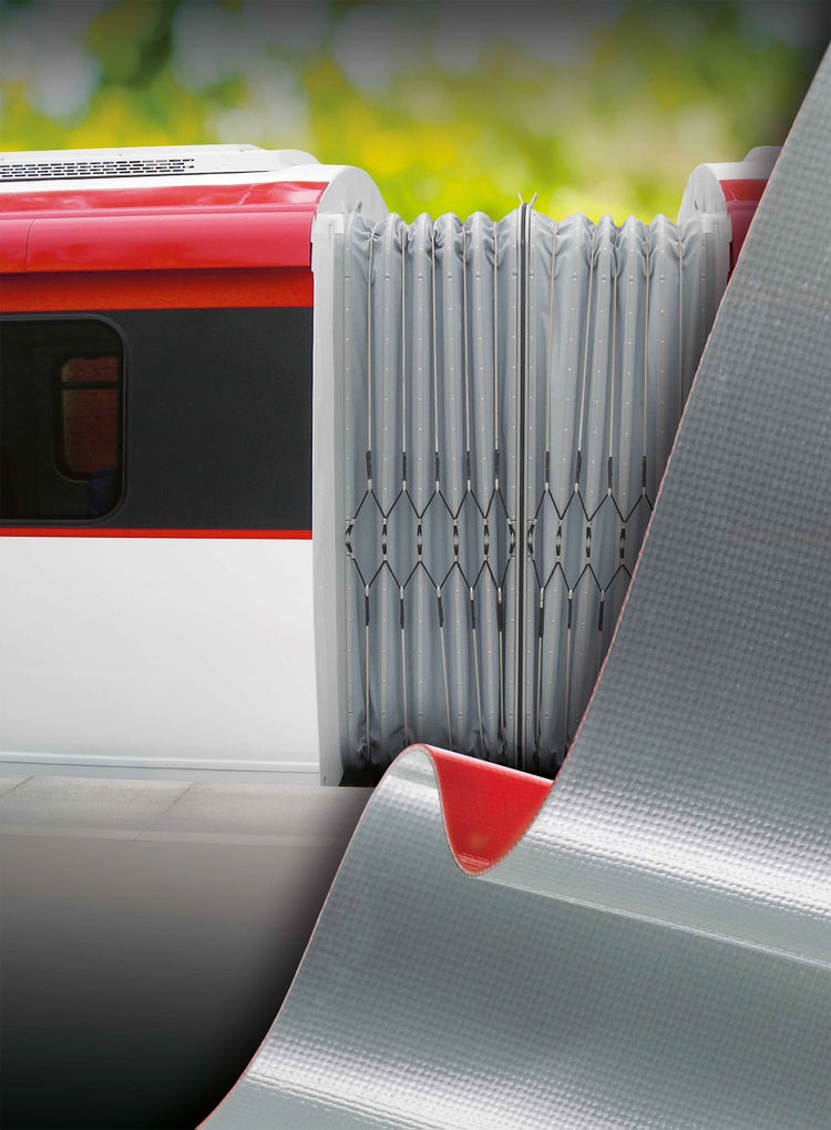 Frankfurt am Main, May 2017. ContiTech concertina wall materials are very successful in road and rail vehicles – and the requirements are extremely demanding. Because, as a flexible connecting system in articulated buses and between individual railway carriages, concertina wall materials are constantly in motion. In addition, they have to withstand stone chipping, UV radiation, rain and snow. All in a day’s work for ContiTech. The concertina wall materials meet the stringent fire protection specifications. They have also been tested to European standard EN 45545-2 for use in rail vehicles. The materials are available in thicknesses from 0.8 to 3.0 mm, in different material finishes such as CSM or silicone rubber, and in several colors.
