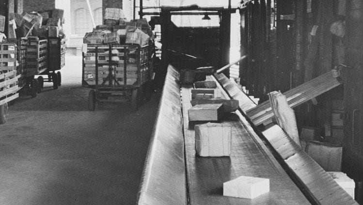 After the Berlin Wall was built in 1961, our conveyor belts helped separated families to stay in contact and send packages to their loved ones on the other side of the Wall: The rubber conveyor belts from Hanover were in use for receiving, pre-sorting and distributing packages at major post offices and among other things helped with processing mail to and from “over there” from the 1960s onwards. Meanwhile, the post offices benefited from the very long service life of the belts and rapid amortization.