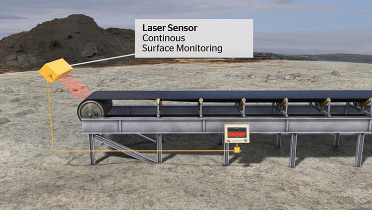CONTI SurfaceProtect is a laser-based system that continuously monitors the surface of the conveyor belt. The system evaluates the cover condition for cuts, and gouges or large impact damage events. Data is analyzed and reported with the position and size of all surface damages.