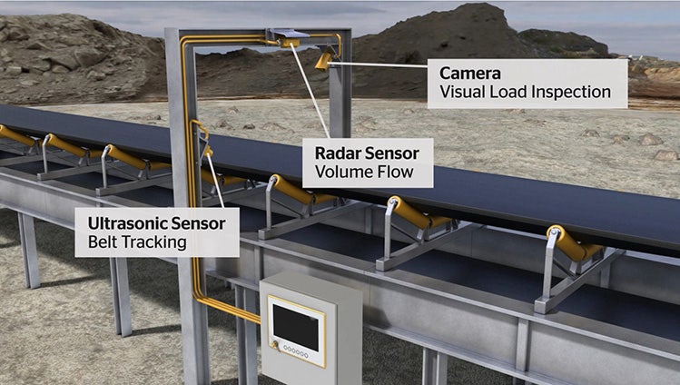 - Data cross correlation is applied to calculate volume flow and to monitor for spillage and belt misalignment.