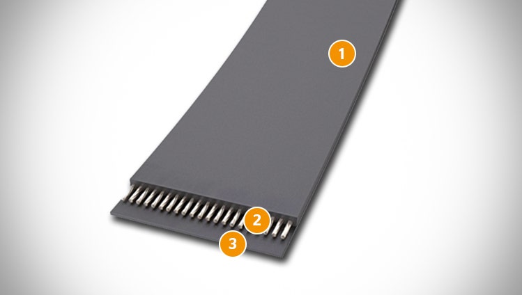 Thanks to its greater flexibility and traction, flat belts enables compact drives with much smaller pulley diameters in comparison to conventional drives with steel cords.