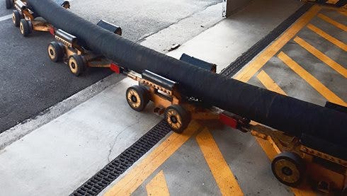 Flexible hoses used for ship-to-shore compressed natural gas transfer.