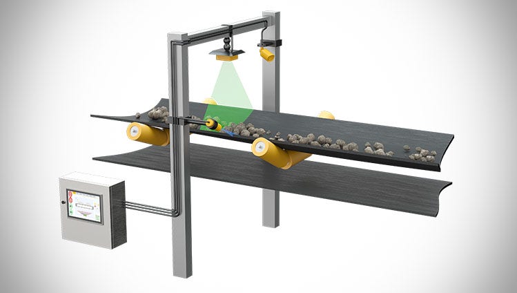 - It scans the material and belt from various angles to determine the position of load and belt.